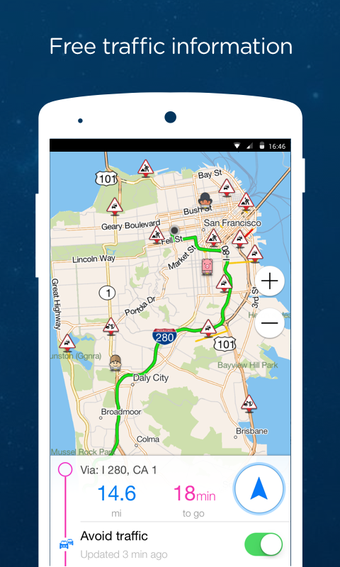 Navmii GPS World Navfree est une application de navigation et de trafic gratuite conçue pour les conducteurs. Elle offre une navigation guidée par la voix, des informations sur le trafic en temps réel, ainsi qu'une recherche locale et des points d'intérêt. Avec des cartes hors ligne stockées localement, les utilisateurs peuvent naviguer sans connexion Internet, ce qui est idéal pour les voyages à l'étranger. Plus de 24 millions d'utilisateurs dans le monde bénéficient de cartes précises dans plus de 150 pays.